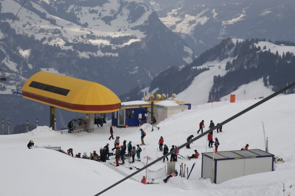 Winterkamp vindt plaats in Stoos, een klein dorpje nabij de Vierwaldstättersee. Stoos ligt op 1300 meter hoogte en is alleen bereikbaar via een treintje dat vanuit het dal recht tegen de berg op rijdt. Wanneer je boven uitstapt, sta je in een winters paradijs: een sneeuwwit en autoloos dorpje waar arrensleeën rondgaan. Doordat het treintje de enige manier is om in Stoos te komen, blijven de massa’s wintersporters uit. Het skigebied is klein en overzichtelijk, maar biedt genoeg uitdaging voor zowel beginnende als gevorderde skiërs en snowboarders.
